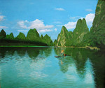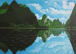 2007Suikerbergen bij Guilin vanaf de Li-rivier. Dit schilderij is voorzien van een mooie lijst.